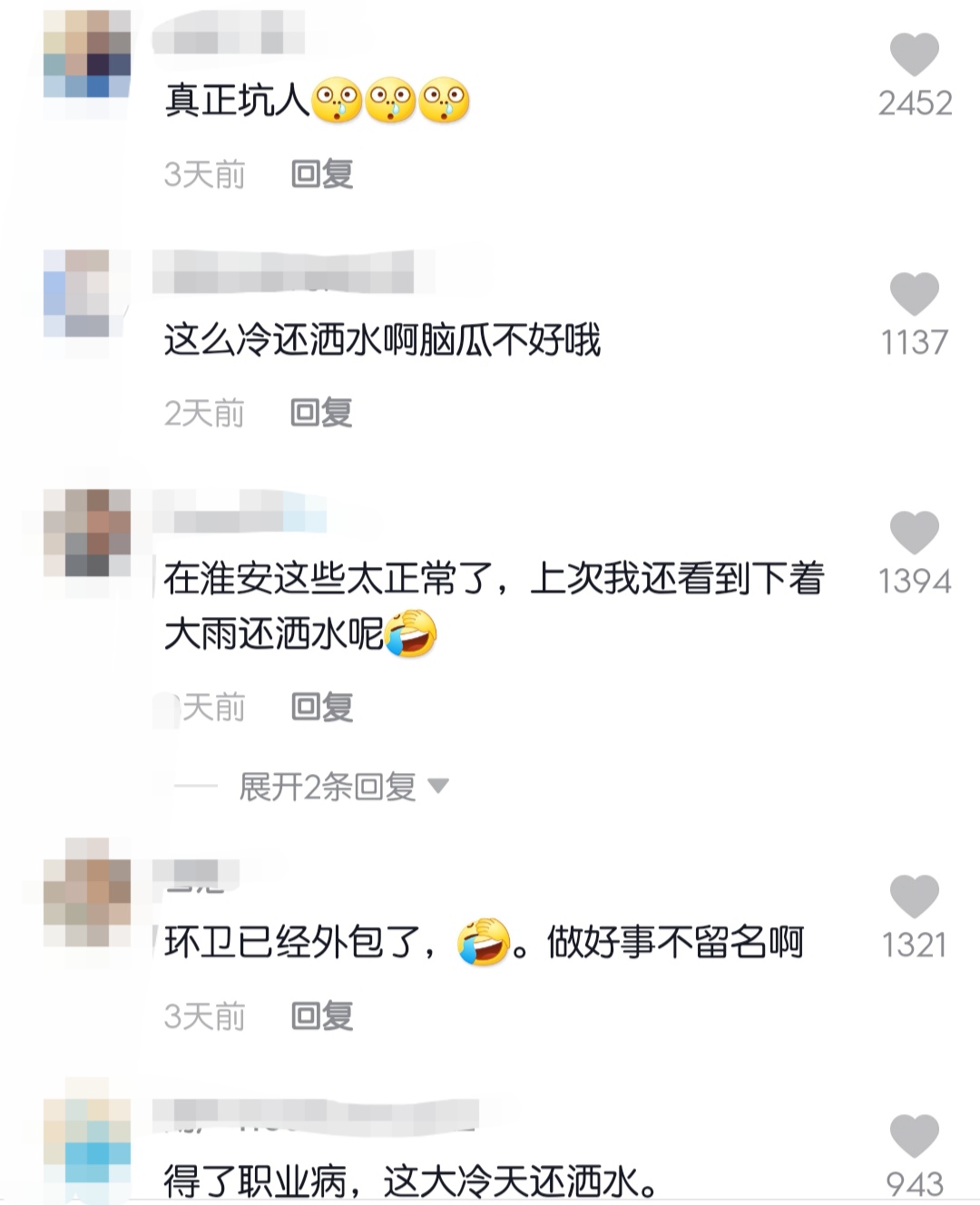 淮安城管表示,淮陰區(qū)將對此事作進(jìn)一步處理。同時,城管局再次要求各縣區(qū)城管部門和環(huán)衛(wèi)市場化企業(yè),在低溫冰凍天氣嚴(yán)禁進(jìn)行道路沖洗作業(yè)。
