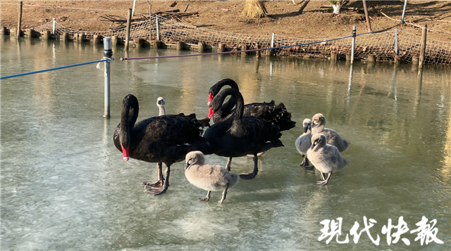 現(xiàn)代快報(bào)記者了解到,為了能讓黑天鵝們安心過冬,飼養(yǎng)員特意增加了采食點(diǎn),并增加喂食次數(shù)。同時(shí),飼養(yǎng)員也鑿開了部分冰面,方便黑天鵝們游泳。