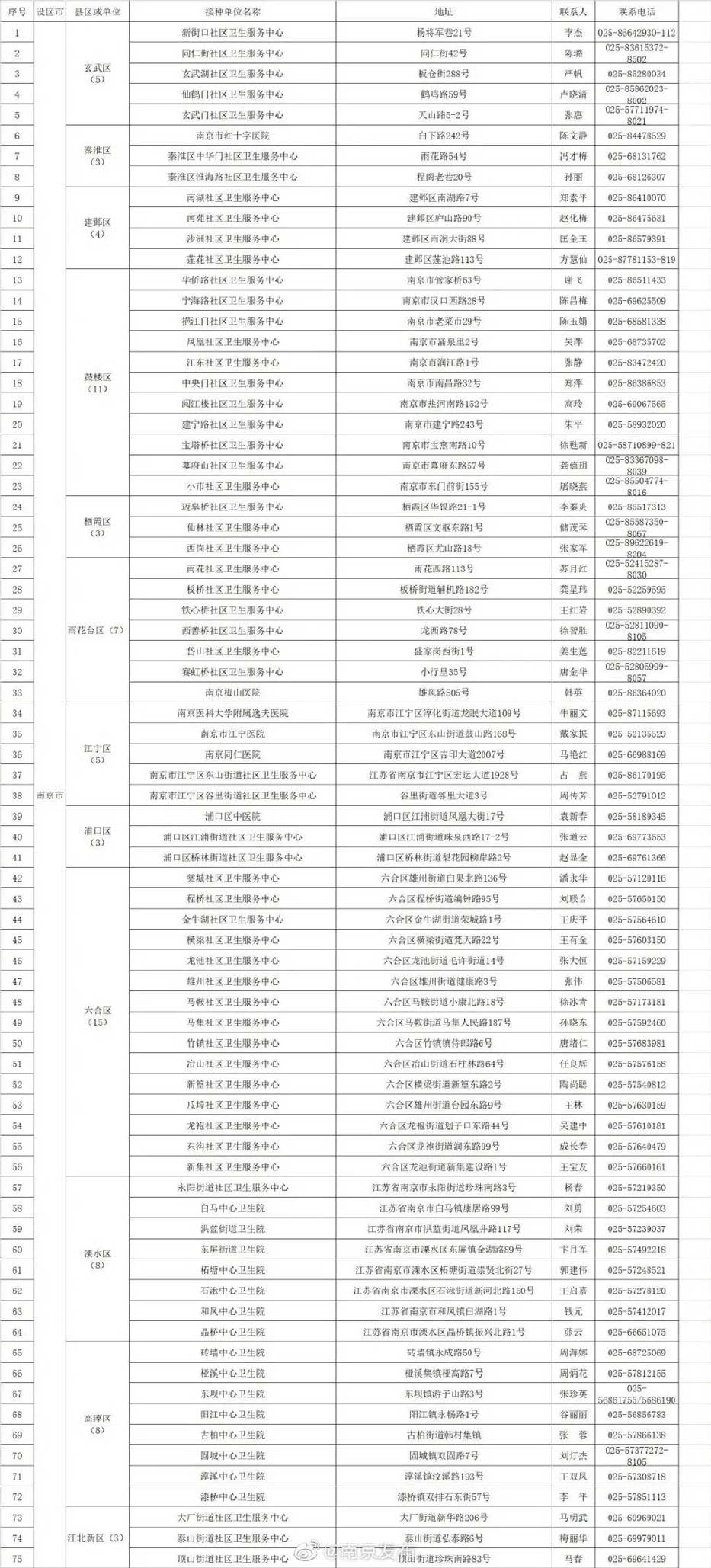 南京75家新冠疫苗接種單位公布!