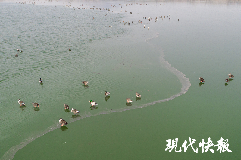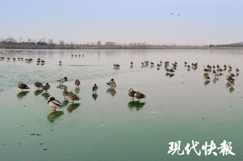 (通訊員 王維 記者 曹德偉)隨著氣溫持續(xù)走低,鎮(zhèn)江句容赤山湖湖面開始大面積結(jié)冰,野鴨與鷺鳥等水鳥的活動水域也覆蓋了一層薄薄的冰面。