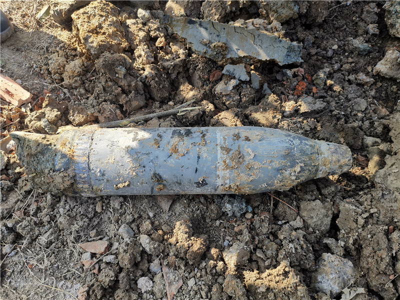 村民清理魚(yú)塘挖出一枚炮彈