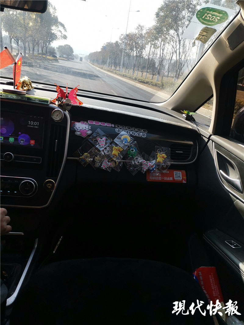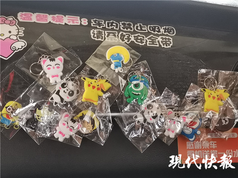 很快,徐祥就采購(gòu)了一批掛飾,維尼小熊、海綿寶寶、叮當(dāng)貓……他把這些小禮物一個(gè)個(gè)粘貼在車?yán)?,五顏六色的,乘客一上車就能看到,有的還會(huì)好奇地詢問(wèn)。“大部分乘客都挺有素質(zhì),只要是按時(shí)上車,態(tài)度禮貌,我都會(huì)送他們一個(gè)。”徐祥說(shuō),小禮物值不了幾個(gè)錢,但是外形可愛(ài)治愈,不少乘客發(fā)現(xiàn)打車還能拿到小禮物,都會(huì)很開心。特別碰到一些年輕人,他們會(huì)在車上拍照發(fā)朋友圈,“炫耀”一下當(dāng)天的好運(yùn)氣,這都讓徐祥覺(jué)得很滿足。