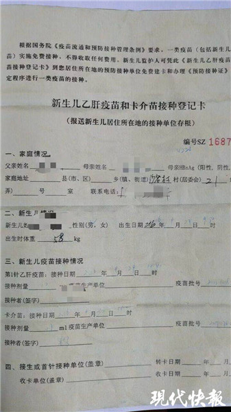 △ 男孩的新生兒疫苗接種記錄