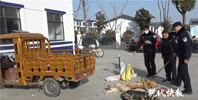隨后,東胡集派出所民警在趕往韓女士家里的途中,發(fā)現(xiàn)一輛電動三輪車非??梢桑谑钱?dāng)場將此車輛控制。“當(dāng)時(shí)是晩上11點(diǎn)多,本來有電動三輪車就十分可疑了,讓他接受檢查還拒不配合。”民警告訴記者,王某試圖轉(zhuǎn)動車把手,加速沖卡避免盤查。民警只能果斷采取措施,用警用甩棍砸破車窗,將王某控制起來。果然,民警在車內(nèi)發(fā)現(xiàn)了五條土狗。