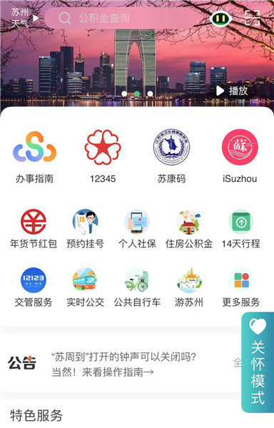 蘇州市政府副秘書(shū)長(zhǎng)、市大數(shù)據(jù)管理局局長(zhǎng)顧建明介紹了關(guān)懷模式。他說(shuō),從今天起,在“蘇周到”的首頁(yè),只需點(diǎn)擊浮窗就可一鍵進(jìn)入“關(guān)懷模式”,不僅字體更大,圖標(biāo)更為醒目,還將蘇康碼、蘇州養(yǎng)老、游在蘇州、蘇州園林、社保查詢、醫(yī)院掛號(hào)等老年人常用服務(wù)和功能放在首頁(yè)。