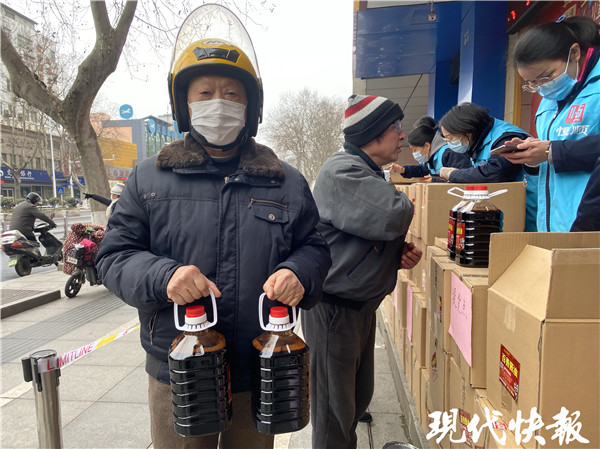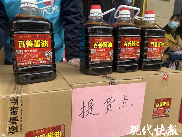 (記者 曹德偉 文/攝)“您好,請出示您的訂單尾號及您的手機號碼。”2月5日上午,在鎮(zhèn)江恒順商場大市口店門前,前來提貨的邱阿姨按照工作人員指示,領(lǐng)取到了自己提前網(wǎng)上下單購買的兩桶醬油。“不像以前要排很久的隊,這樣線上打醬油方便多了!”邱阿姨樂呵呵地告訴記者。辦齊年貨笑聲甜,打好醬油等過年。今年恒順首次將打醬油從線下搬到線上,獲得了市民們的一致好評,既保留了年味,又衛(wèi)生安全。