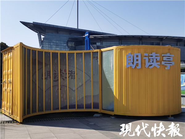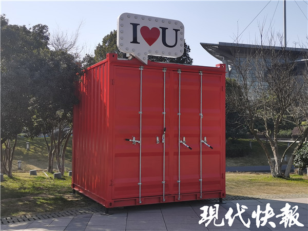 在開闊的廣場上,創(chuàng)意集裝箱每個都別具一格,青春拍立得、演播室、朗讀亭,功能不一。不少集裝箱是江寧大學城內(nèi)的高校主題箱,比如我愛南航、無影南醫(yī)等。