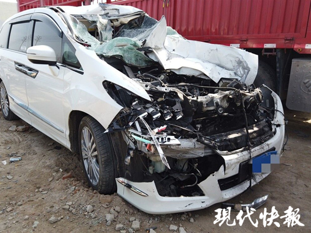 當晚10點多鐘,徐州豐縣交警大隊城區(qū)中隊接到報警稱,一男子酒后駕駛一輛白色商務車撞上一輛??吭诼愤叺拇筘涇囄膊俊C窬杆仝s到現(xiàn)場,發(fā)現(xiàn)這輛商務車車頭已擠壓在大貨車尾部的車廂下,車內氣囊已全部打開,車身外觀損毀嚴重,駕駛人張某滿身酒氣,正撫摸著受傷的脖子不知所措地坐在車旁草地上。