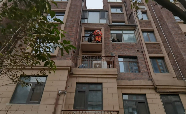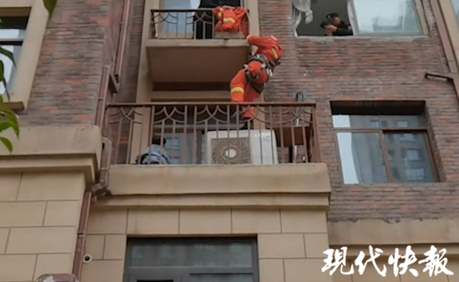 消防員趕到現(xiàn)場(chǎng)看到,3樓平臺(tái)上的男孩正坐在里面玩耍。因3樓住戶家中沒人,房門無法打開,消防員擔(dān)心孩子有可能再次出現(xiàn)翻越行為,于是立即利用繩索做好防護(hù)措施,從4樓男孩家降落至3樓小平臺(tái),確認(rèn)小孩并未受傷。