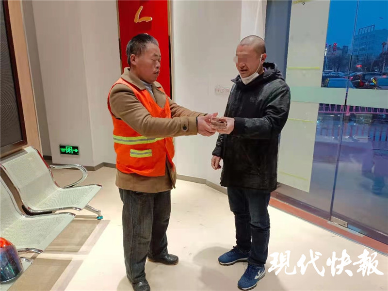 環(huán)衛(wèi)工撿到3.5萬元現(xiàn)金 雨中站半小時等失主