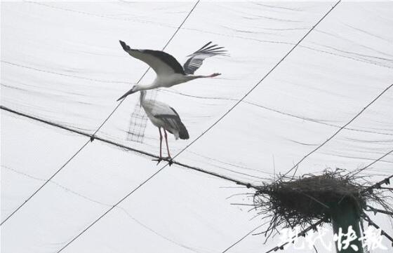(通訊員 曹菁琳 記者 花宇)近日,南通森林野生動物園內(nèi)來了一只白色大鳥。這只 " 不速之客 " 在遷徙途中,被園內(nèi)同族群吸引,自己在鳥籠頂部筑巢安家,天天與另一半 " 隔籠相望 "。現(xiàn)代快報記者了解到,這只 " 不速之客 " 為國家一級保護動物東方白鸛。