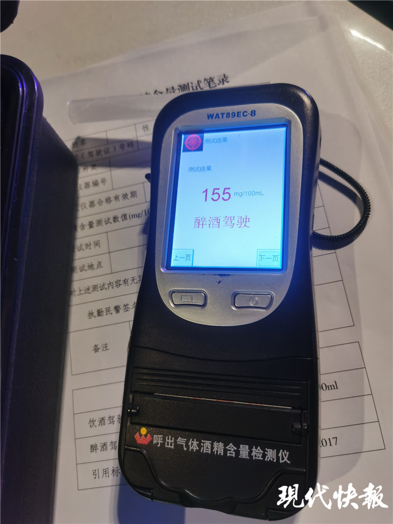 現(xiàn)代快報記者了解到,2021年3月7日晚上9點40分左右,南京市公安局特警支隊巡防卡口大隊馬東查報站與交警四大隊在云錦路附近開展夜間聯(lián)合清查時,一輛轎車打著雙閃緩緩駛來,形跡可疑。駕駛員發(fā)現(xiàn)民警在查酒駕,便開車駛?cè)敫浇成虉龅耐\噲?,民警立即上前攔截。駕駛員沒有停車,并加速闖入停車場,民警快速上前追趕,車輛在進(jìn)入停車場二樓時被前方車輛堵住,駕駛員被民警控制。民警聞到車內(nèi)一股很濃的酒味,隨后民警將駕駛員帶離車輛。經(jīng)呼吸式酒精測試,結(jié)果為155mg/100ml,屬于醉酒駕駛機動車。