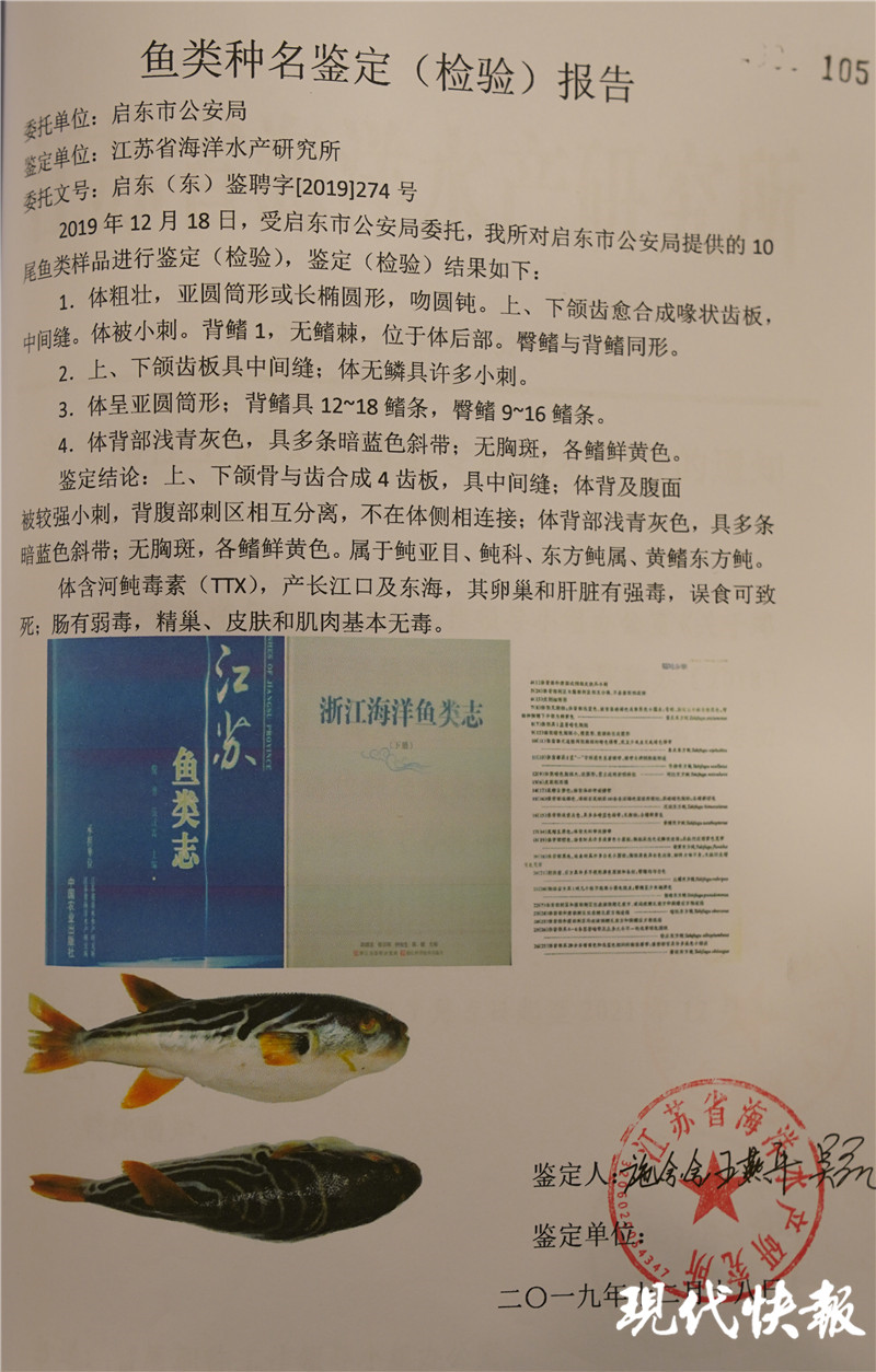 經(jīng)江蘇省海洋水產(chǎn)研究所鑒定,在楊某某家查扣的河鲀魚樣品中含河鲀毒素(TTX),產(chǎn)長江口及東海,其卵巢和肝臟有強(qiáng)毒,誤食可致死;腸有弱毒,精巢、皮膚和肌肉基本無毒。經(jīng)啟東市公安局物證鑒定室鑒定,張某某符合河鲀魚毒素中毒死亡;經(jīng)司法鑒定科學(xué)研究院鑒定,張某某的腎組織、肝組織、肺組織中,其兒媳的尿液中,楊某某家查扣的河鲀中,張某某家廚房垃圾桶內(nèi)的河鲀中均檢出河鲀魚毒素成分。
