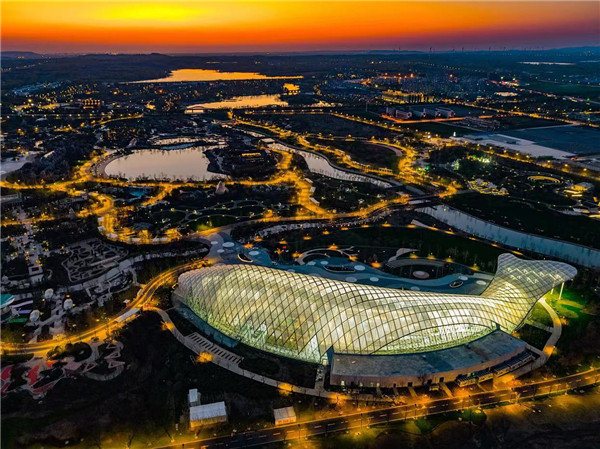 據(jù)了解,2021揚(yáng)州世界園藝博覽會(huì)國(guó)際館位于園區(qū)東部,面積11000㎡,整個(gè)館高30多米,長(zhǎng)250多米。場(chǎng)館在設(shè)計(jì)理念上結(jié)合了長(zhǎng)江揚(yáng)州段的保護(hù)動(dòng)物江豚,喻意“江豚游弋”,因此,國(guó)際館也有了“江豚”的外號(hào)。這座“有生命、會(huì)呼吸”的綠色建筑會(huì)隨天氣、光線變幻色彩點(diǎn)亮世園會(huì),在開園期間將承擔(dān)國(guó)際花卉展示、花卉園藝競(jìng)賽、配套服務(wù)區(qū)等功能。(張卓君 攝)