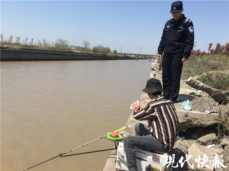 據(jù)介紹,6日中午12時(shí)許,該所沿江巡防隊(duì)員巡邏到長江海門段立新河河閘水域時(shí),發(fā)現(xiàn)河閘內(nèi)側(cè)水域岸邊有一男子頭戴遮陽帽并手拿魚竿,正在垂釣。他還特意打了一盆水放在腳邊,準(zhǔn)備放置江魚。