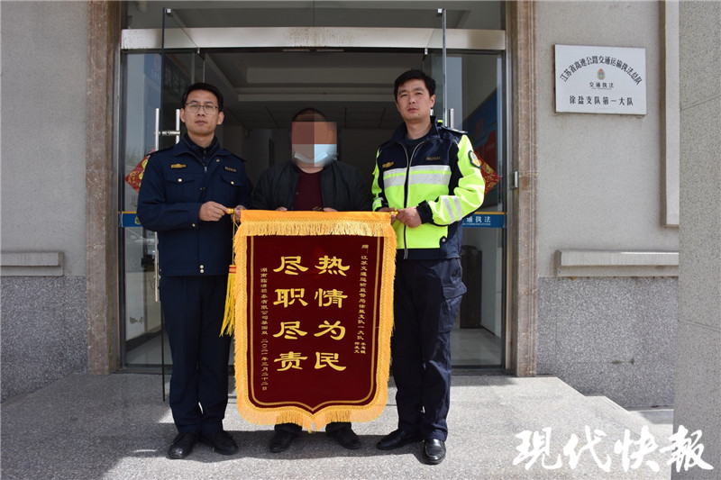 (通訊員 曹向南 記者 姜振軍 王菲)4月7日10時(shí)許,湖南省常德貨車司機(jī)黎先生邁著還沒有完全康復(fù)的腳,來到江蘇省高速公路交通運(yùn)輸執(zhí)法總隊(duì)徐鹽支隊(duì)第一大隊(duì)駐地,將一面寫有“熱情為民 盡職盡責(zé)”的錦旗送給李忠鍵、鄭友文。在1月18日危險(xiǎn)品事故中,這兩位綜合執(zhí)法員將他從被困車輛中救出。