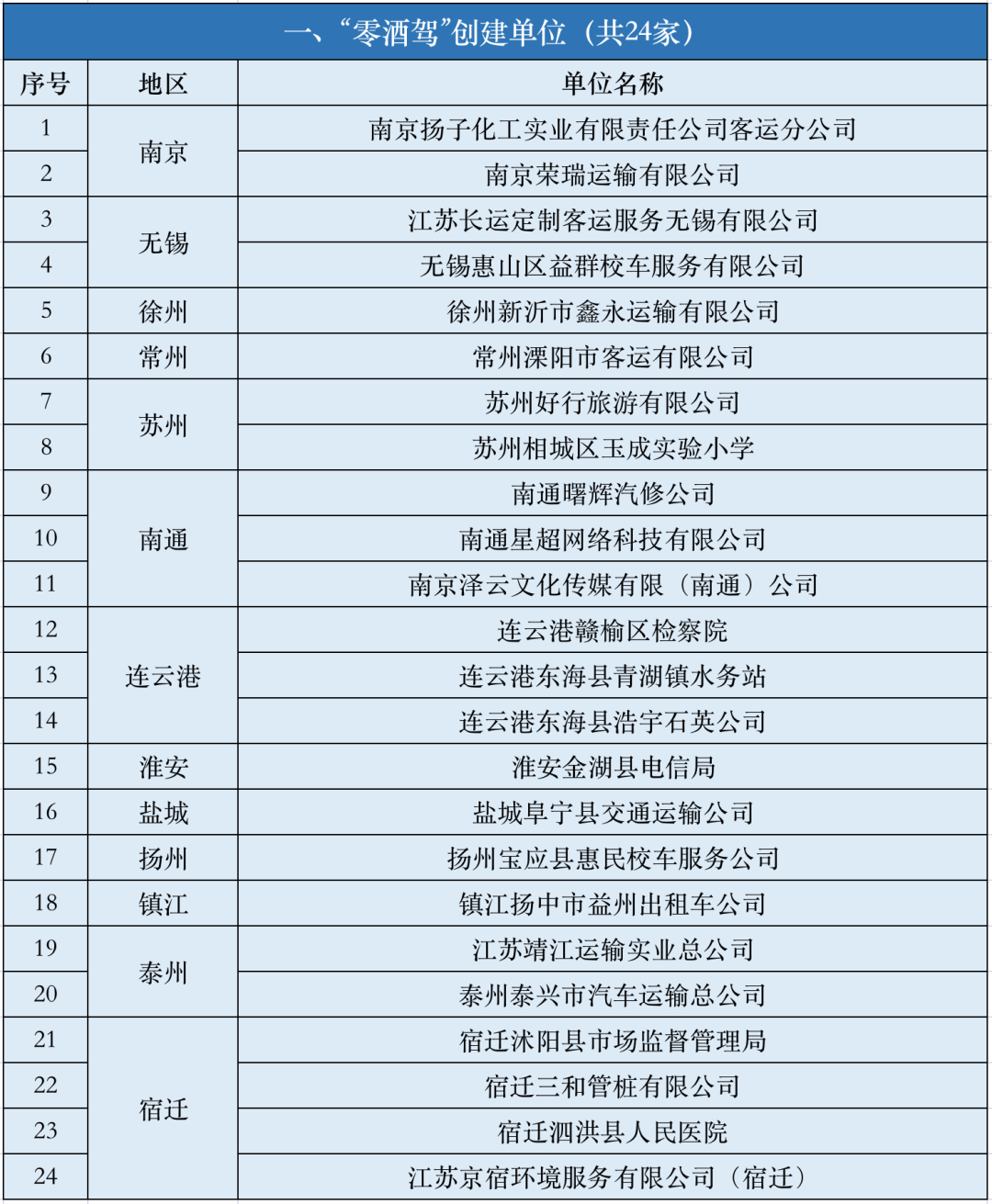江蘇交警公示2021年第一批“零酒駕”創(chuàng)建單位