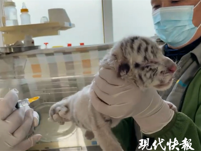 據(jù)南通森林野生動(dòng)物園工作人員介紹,四只小白虎在園內(nèi)出生,因?yàn)榘谆寢尩谝淮紊a(chǎn),沒有哺育經(jīng)驗(yàn),四個(gè)小兄弟就被媽媽“遺棄”。工作人員把四兄弟送往育幼室,進(jìn)行人工育幼。本次疫苗接種是為了預(yù)防小白虎剛出生時(shí)抵抗力差,外界可能會(huì)給它們帶來的炎癥。