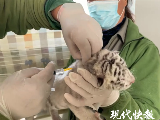 (通訊員 曹菁琳 記者 花宇)“我們一起打疫苗,一起苗苗苗苗苗”、“建立全民免疫,需要你一‘臂’之力”、“防疫道路千萬條,接種疫苗第一條”……近日,新冠病毒疫苗接種成為了熱點(diǎn)話題,而在南通森林野生動(dòng)物園里,小動(dòng)物們也正在接種疫苗。4月10日下午,出生才7天的白虎四胞胎迎來了首次疫苗接種。他們接種的疫苗主要是為了預(yù)防外界可能帶來的炎癥。四兄弟還沒碰到針就叫到破音,模樣十分可愛。