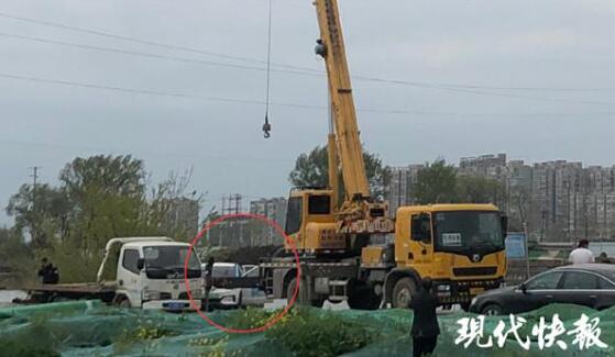 上午 10 點(diǎn)多,現(xiàn)代快報(bào)記者在現(xiàn)場看到,蟒蛇河大橋南西側(cè)事故發(fā)生處拉著安全警界線,一輛施救工程吊車,已經(jīng)將墜河轎車吊到岸邊。