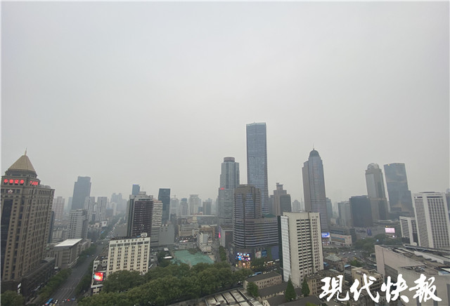 △16日,浮塵籠罩在新街口樓群上空