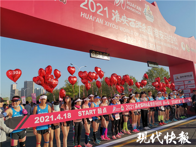 (記者 李子璇 文/攝)42.195公里“醉美”賽道令人心曠神怡,15000名各地跑友同場(chǎng)釋放運(yùn)動(dòng)激情,2200多年的運(yùn)河古城煥發(fā)出時(shí)尚氣息與發(fā)展活力……4月18日7時(shí)30分,以“犇跑淮安,幸福平安”為主題,以“運(yùn)河三千里,醉美是淮安”為口號(hào)的2021淮安西游樂(lè)園淮安馬拉松激情開跑。開跑前,萬(wàn)人高唱國(guó)歌,起點(diǎn)附近人聲鼎沸,現(xiàn)場(chǎng)熱情四射,不斷傳來(lái)掌聲和吶喊聲。