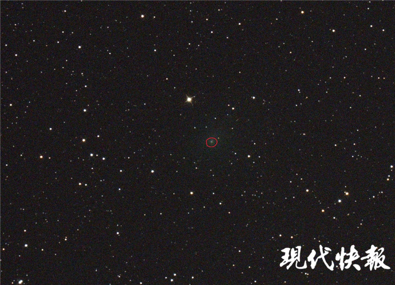 南京天文愛好者協(xié)會會員陽垈濤也拍到了這顆彗星。照片中,在其他亮星點(diǎn)綴之下,這顆彗星并不容易一眼被看見。但仔細(xì)一看,又能立刻發(fā)現(xiàn)它的與眾不同:看起來呈彌散狀,比較模糊不清,并發(fā)出淡綠色的光。