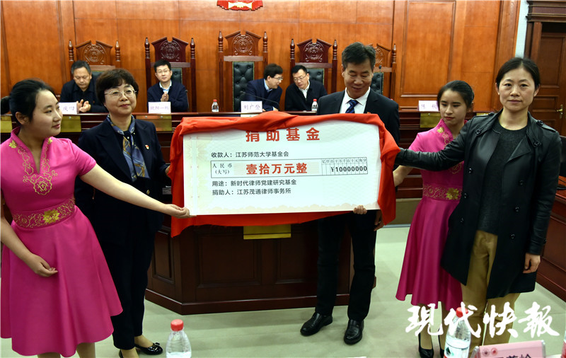 江蘇師范大學黨委副書記、副校長劉廣登介紹,“新時代律師黨建研究基金”是江蘇茂通律師事務所繼2013年向該校捐贈40萬元設立“茂通助學助教基金”后的第二個基金項目。截至今年,江蘇茂通律師事務所已累計向江蘇師范大學捐贈50萬元。