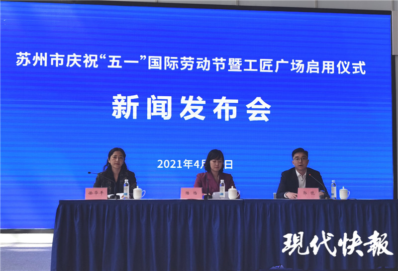 (記者 高達(dá) 文/攝)4月26日,蘇州市召開2021年“五一”國(guó)際勞動(dòng)節(jié)和工匠廣場(chǎng)啟用新聞發(fā)布會(huì)。蘇州市總工會(huì)新聞發(fā)言人、副主席陸怡,相城區(qū)總工會(huì)副主席徐華平,共同介紹今年慶祝“五一”國(guó)際勞動(dòng)節(jié)、首個(gè)“蘇州工匠日”和蘇州工匠廣場(chǎng)啟用情況。