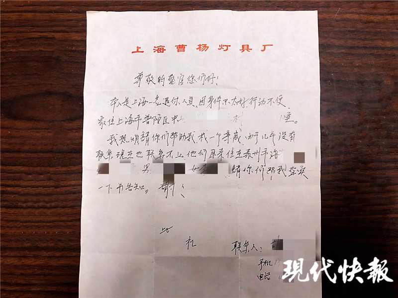△上海老人寄來的手寫尋親信