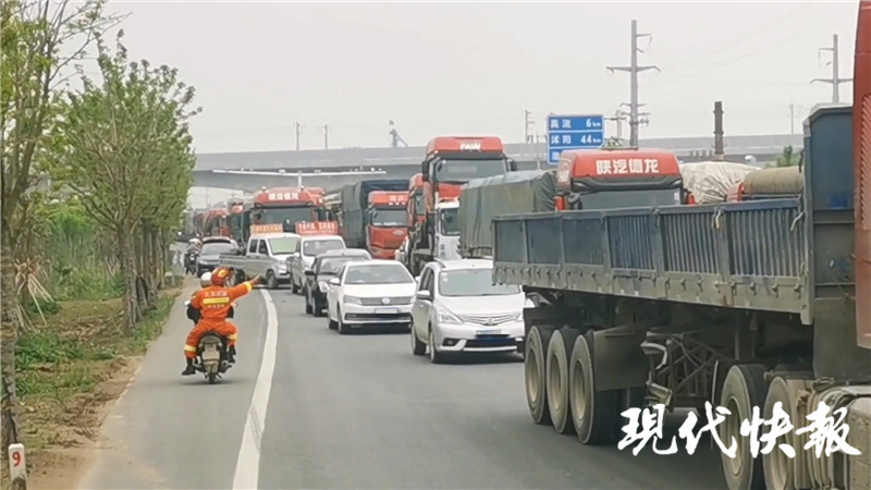 消防趕赴救援現(xiàn)場被堵 熱心路人駕摩托幫忙疏散車輛