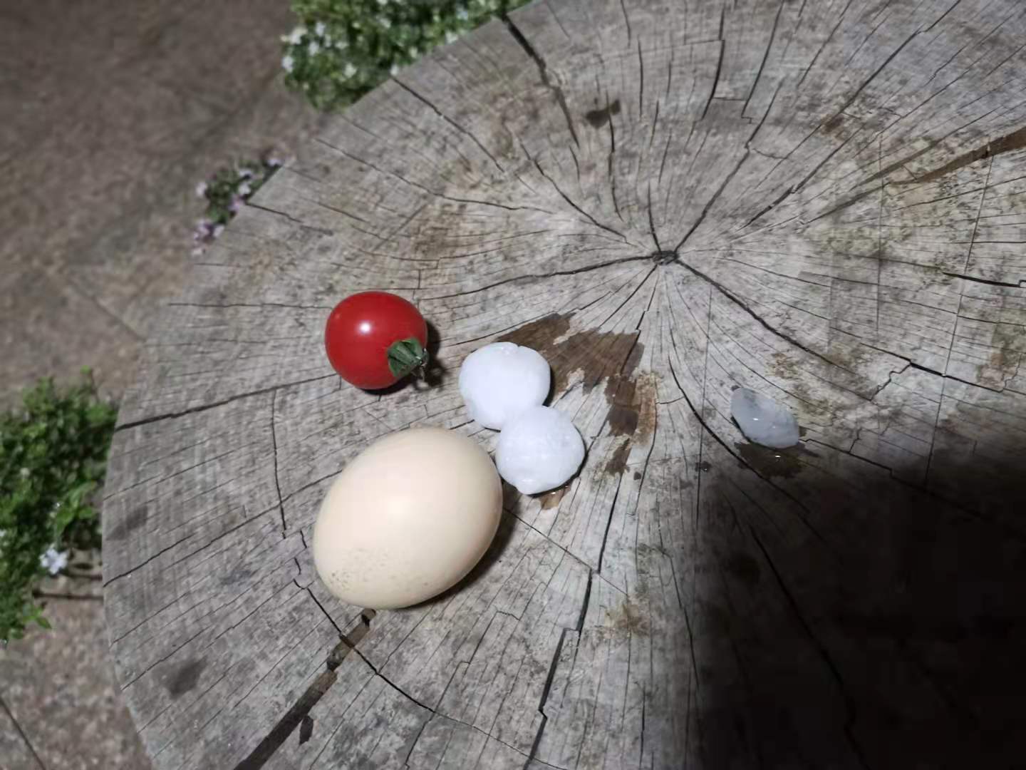 4月30日晚11點左右,蘇州吳江盛澤地區(qū)有居民發(fā)現屋外落下冰雹,現代快報記者從報料人提供的照片上看到,此次落下的冰雹個頭較大,部分直徑約有兩至三厘米,還有居民拿來雞蛋和圣女果與撿拾的冰雹進行同屏比較。