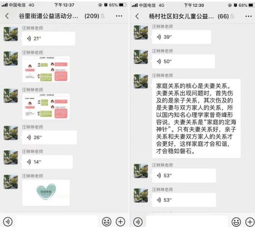 本次課程通過(guò)語(yǔ)音、圖片、文章、視頻相結(jié)合的方式在線與大家進(jìn)行講解,著重介紹了夫妻關(guān)系在整個(gè)家庭中的重要性,圍繞如何經(jīng)營(yíng)和諧婚姻關(guān)系、如何處理家庭關(guān)系沖突、建立婚姻心理健康等方面進(jìn)行講解,引導(dǎo)居民正確處理好婚姻、家庭關(guān)系,學(xué)會(huì)在生活中互相信任、理解、包容和尊重對(duì)方。汪老師通過(guò)發(fā)生在身邊的案例和大家一一分析矛盾產(chǎn)生原因、解決的辦法以及今后生活中應(yīng)該如何經(jīng)營(yíng)家庭關(guān)系等方面進(jìn)行講解,用通俗易懂的方式幫大家了解婚姻家庭的經(jīng)營(yíng)之道。
