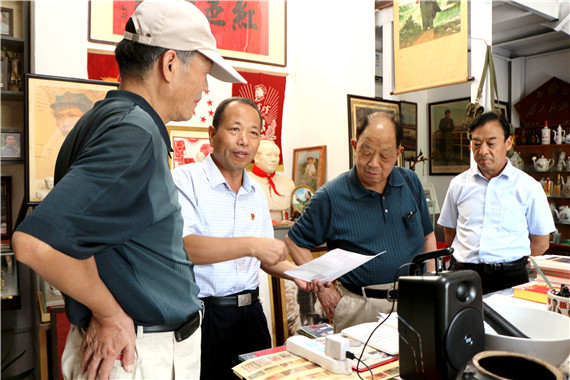 魏方剛送走一批參觀者,又迎來了邳州市原政協(xié)副主席、邳州文化研究會名譽主席劉彤、邳州市原政協(xié)副主席、邳州文化研究會常務副會長劉漢超、邳州市文化研究會副會長孫宜方、邳州市環(huán)保局原副局長張守軍、邳州文化研究會理事曹兆民等邳州市老領導和文化研究人員前來考察。劉彤等老領導和紅色文化研究人員參觀后,被魏方一個普通的工作人員,幾十年如一日,熱愛紅色文化、宣傳紅色文化,自費投資近百萬元興辦紅色文化館的精神所感動,他們當即商定,這期邳州文化刊物《邳州文化》拿出一定版面,重點宣傳介紹邳州紅色文化收藏館,宣傳紅色藏品、展現(xiàn)百年黨史。