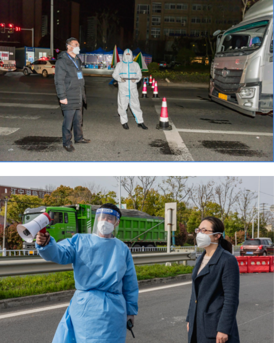突擊隊(duì)小組長周鵬說,每天有幾百輛車要進(jìn)行分流、引導(dǎo)和勸返。早8點(diǎn)到下午2點(diǎn),下午4點(diǎn)到晚上10點(diǎn)是車輛最多的時(shí)候,也是大家最忙的時(shí)候。短短600米的緩沖區(qū),同志們要來來回回走上幾十趟, 一天至少要走兩萬多步。連續(xù)幾天的堅(jiān)持,讓周鵬的聲音 變得嘶啞, 眼睛里都是血絲,但他依然保持著旺盛的精力,一遍遍地詢問和協(xié)調(diào) 。“守住這里,便是守住江寧的門戶。為了早日戰(zhàn)勝疫情,苦點(diǎn)累點(diǎn)都值得。”周鵬微笑著說。