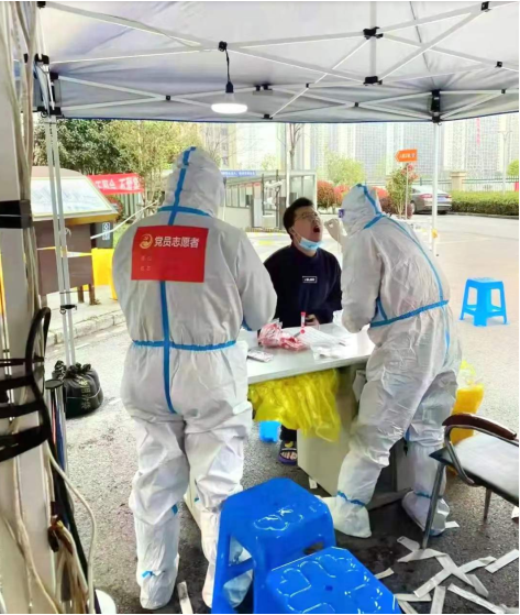 3月19日下午,建行句容支行接到句容市委組織部要求增援寶華的通知后,在全行公開(kāi)招募志愿者,支行營(yíng)業(yè)室湯駿第一時(shí)間主動(dòng)報(bào)名,參與到核算檢測(cè)工作中。其實(shí),湯駿作為黨員和退伍軍人,他已經(jīng)不是第一次參加疫情防控志愿者行動(dòng)了,早在2020年疫情爆發(fā)時(shí),他就參加了當(dāng)?shù)卮逦瘯?huì)的志愿者行動(dòng)。他僅用了1個(gè)小時(shí)的準(zhǔn)備時(shí)間,當(dāng)天下午四點(diǎn)就趕到寶華抗疫第一線(xiàn)!