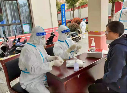 句容城區(qū)的核酸檢測(cè)也馬不停蹄地進(jìn)行。劉菲和同事一起,坐上簡(jiǎn)易的流動(dòng)采集車(chē),一天跑了句容城區(qū)四家大企業(yè),對(duì)企業(yè)員工進(jìn)行核酸采集。當(dāng)天陰雨淅淅瀝瀝,為讓企業(yè)員工少受凍,盡快做完核酸,她除了中午吃午飯,一直堅(jiān)持在崗沒(méi)有休息,手機(jī)錄入系統(tǒng)崩潰了就關(guān)機(jī)重啟,胳膊抬酸了就站起來(lái)采集,她和同事采了近1900人。