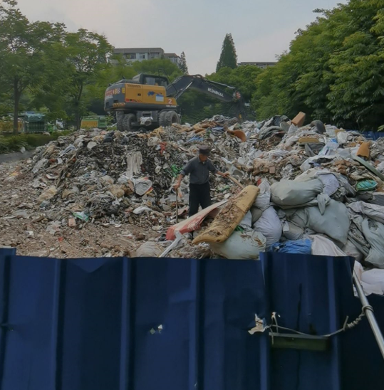 江南時(shí)報(bào)訊 《南京市生活垃圾管理?xiàng)l例》中明確規(guī)定:有害垃圾、廚余垃圾和其他垃圾的收集、運(yùn)輸和處置單位應(yīng)當(dāng)依法取得相應(yīng)許可;需要經(jīng)過轉(zhuǎn)運(yùn)站轉(zhuǎn)運(yùn)的生活垃圾,在轉(zhuǎn)運(yùn)站密閉分類存放,存放時(shí)間不得超過24小時(shí)。5月24日,家住南京大廠揚(yáng)子四村9幢的市民孫先生向記者反映,從2020年開始,自家小區(qū)里出現(xiàn)了一個(gè)垃圾臨時(shí)堆放點(diǎn),用藍(lán)色鋼擋板圍住,周邊運(yùn)來的各種垃圾在此中轉(zhuǎn),露天擺放無任何覆蓋,揚(yáng)塵、氣味、噪音等污染嚴(yán)重影響了小區(qū)居民的生活。