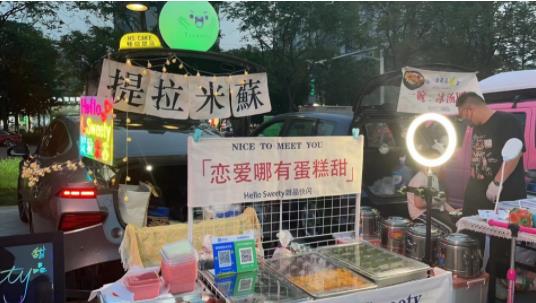 端午前夕,位于南京江寧的納科汽車生活廣場,近30輛車打開后備廂,20天內(nèi)連續(xù)舉辦了4場市集。納科汽車創(chuàng)意園的工作人員石堯偉說:“后備廂市集的創(chuàng)意跟我們汽車廣場很契合,合作辦夜市算是一拍即合。”后備廂市集的火出圈,讓石堯偉他們也靈機一動推出了自己的“走心冰粉”小攤,而他們的后備廂,則是一輛充滿了時尚風的小房車。