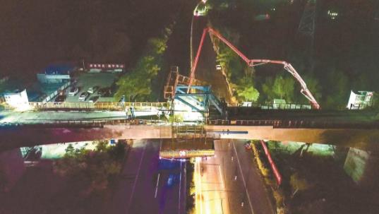 6月25日深夜,濱海港鐵路專線三標(biāo)管段工地仍舊燈火通明,一片繁忙景象。“開始”,22時58分,隨著現(xiàn)場指揮人員的一聲號令,跨規(guī)劃濱淮高速連續(xù)梁開始澆筑,經(jīng)過建設(shè)者們一個半小時的緊張作業(yè),主跨80米的濱海港鐵路專線最大跨度連續(xù)梁順利合龍。這也標(biāo)志著由中鐵上海工程局承建的濱海港鐵路專線三標(biāo)管段鐵路架梁通道已全部打通,為下一步鋪軌,以及2023年6月份順利通車奠定了堅實的基礎(chǔ)。
