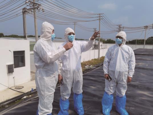 養(yǎng)殖區(qū)無遮無擋,防護(hù)服內(nèi)悶熱難耐,兩個(gè)人一待就是1個(gè)多小時(shí),全面排查養(yǎng)殖場廢氣治理、污水排放等情況,并對養(yǎng)殖場廢氣收集不到位的問題提出了具體的整改要求。走出養(yǎng)殖區(qū),脫下防護(hù)服,兩人已經(jīng)渾身濕透。