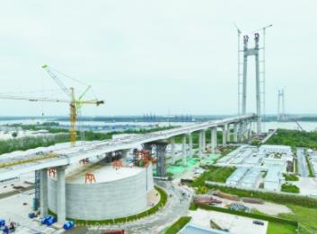 南引橋首榀鋼混梁吊裝到位,南塔建設(shè)加速推進