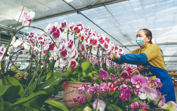 近日,淮安國家農(nóng)業(yè)科技園區(qū)蝴蝶蘭種植基地,工人正在把不同顏色的蝴蝶蘭組合起來,打包發(fā)貨。據(jù)了解,淮安國家農(nóng)業(yè)科技園區(qū)準(zhǔn)備了10萬余株蝴蝶蘭,供應(yīng)春節(jié)市場。通訊員 劉須連 楊彪