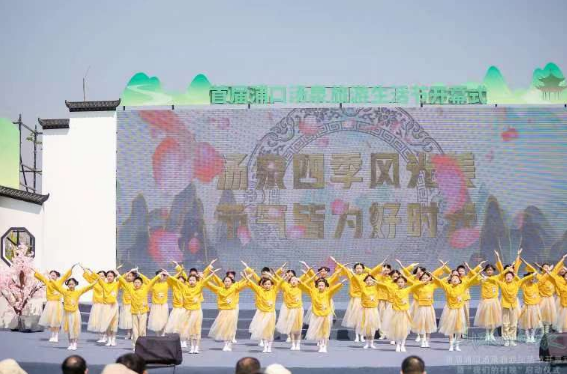 人間最美四月天,暖風舒暢游湯泉,開幕式上,歌舞節(jié)目《早安,湯泉》,將以“十里溫泉、百里老山、千年銀杏、萬只白鷺、億株雪松”而聞名的湯泉展現(xiàn)得淋漓盡致,描繪出了“山、水、泉、林、寺”特色資源稟賦齊聚的絕美田園風光。湯泉中心小學(xué)的孩子們表演的《泉韻童謠》,用節(jié)氣串聯(lián)起湯泉的美景、好物,讓現(xiàn)場嘉賓們沉浸在湯泉山清水秀、物產(chǎn)豐饒、人美心善的桃源意境之中,沐浴著春光,感受著美好。