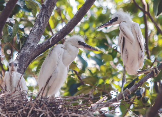 白鷺每年繁殖一次,每巢產(chǎn)蛋4枚左右。俯瞰樹林,每棵樹上都有數(shù)量不等的鳥巢,不少雛鳥已褪去淡黃色絨毛,換上白色“外套”。“再過7—10天,今年第一批雛鳥就能飛出鳥巢了。”當(dāng)?shù)亓謽I(yè)工作者嚴(yán)相進(jìn)一直關(guān)注著這群“天空精靈”。
