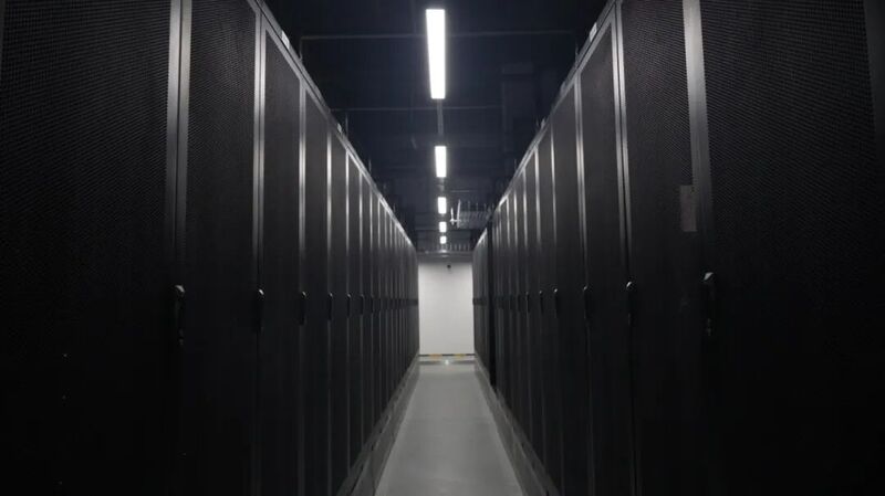 一排排服務(wù)器機(jī)架延伸至視線盡頭,柵格中的指示燈在黑暗中閃爍,地下冷卻管道靜謐蜿蜒。這座占地80畝的算力“巨獸”剛獲得了它的“心臟起搏器”——一座專為其定制的110千伏變電站。