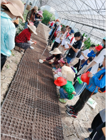 當(dāng)天共有20組百水芊城青少年家庭成員隨著大巴車,來到八卦洲陌上花渡景區(qū)。景區(qū)介紹工作人員組織青少年瀏覽景區(qū)介紹宣傳冊,讓小朋友先行在室內(nèi)用已開口的塑料瓶模擬種植黃豆。隨后,工作人員帶領(lǐng)大家來到農(nóng)業(yè)種植大棚里,觀看農(nóng)業(yè)技術(shù)人員示范大棚種植。天氣炎熱卻不影響孩子們的體驗(yàn)學(xué)習(xí)熱情,很多孩子不怕臟、不怕累,興致勃勃地開始動(dòng)手去嘗試,做得像模像樣,通過學(xué)習(xí)種植的方法進(jìn)一步了解到果蔬的種植過程。
