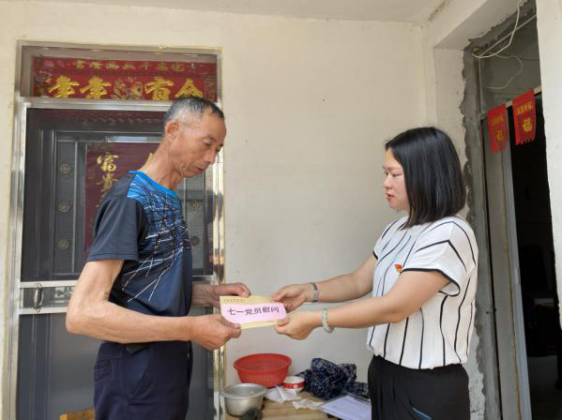 “七一”建黨日,民主村黨支部書記深入轄區(qū)困難黨員家中,讓他們切實感受到黨組織的關(guān)心和溫暖。慰問中,黨支部書記為他們佩戴黨徽,詳細(xì)了解他們的身體情況及健康狀況,為他們送上慰問金,鼓勵他們堅定理想信念,樹立戰(zhàn)勝困難的信心,在黨組織和同志們的幫助下,盡快走出困境。受到慰問的困難黨員紛紛表示非常感謝黨組織的關(guān)懷,今后一定不忘初心,砥礪前行,為社區(qū)建設(shè)貢獻(xiàn)力量。