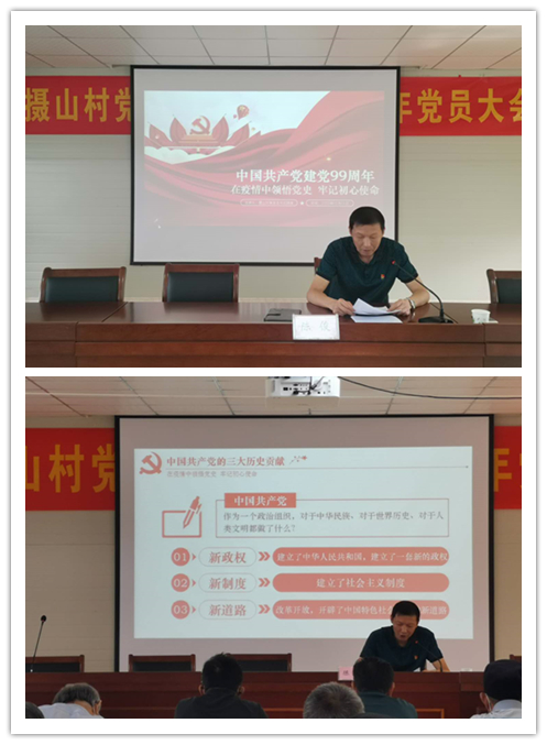 講黨課溫黨史 話初心擔(dān)使命——攝山村黨總支召開慶祝建黨99周年黨員大會