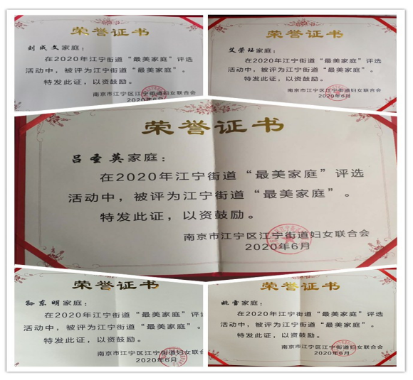 百善孝為先,她用柔弱的肩膀撐起整個(gè)家庭;新型冠狀肺炎來(lái)勢(shì)洶洶,她逆向而行,無(wú)私奉獻(xiàn);一名黨員就是一面旗幟,他用實(shí)際行動(dòng)支持并參與防疫戰(zhàn)斗,發(fā)揮黨員先鋒模范作用。在今年的最美家庭評(píng)選中,新銅社區(qū)5戶家庭分別榮獲2020年度江寧區(qū)江寧街道“孝老愛親”、“抗議先鋒”、“黨員示范”最美家庭榮譽(yù)稱號(hào),其中2戶家庭獲得區(qū)級(jí)最美家庭榮譽(yù)稱號(hào)。